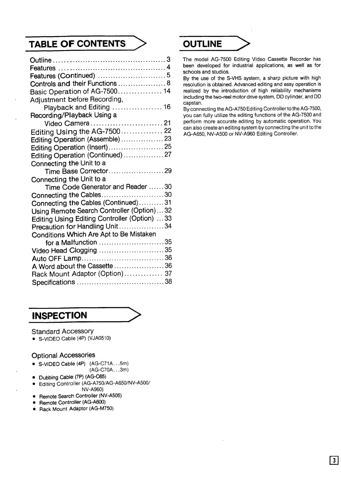 Panasonic AG-7500 - PRODUCT OVERVIEW AND FEATURES; Outline and S-VHS System Introduction