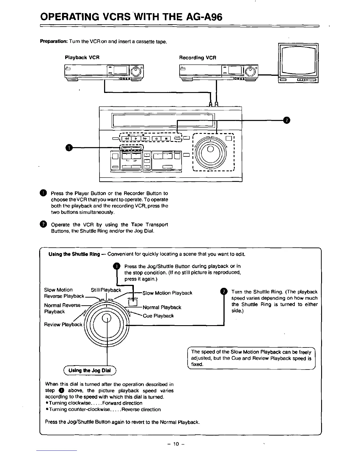 Panasonic AG-A96 - Operating Vcrs with the AG-A96