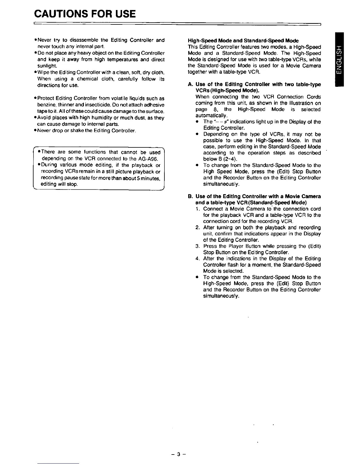 Panasonic AG-A96 - Cautions for Use