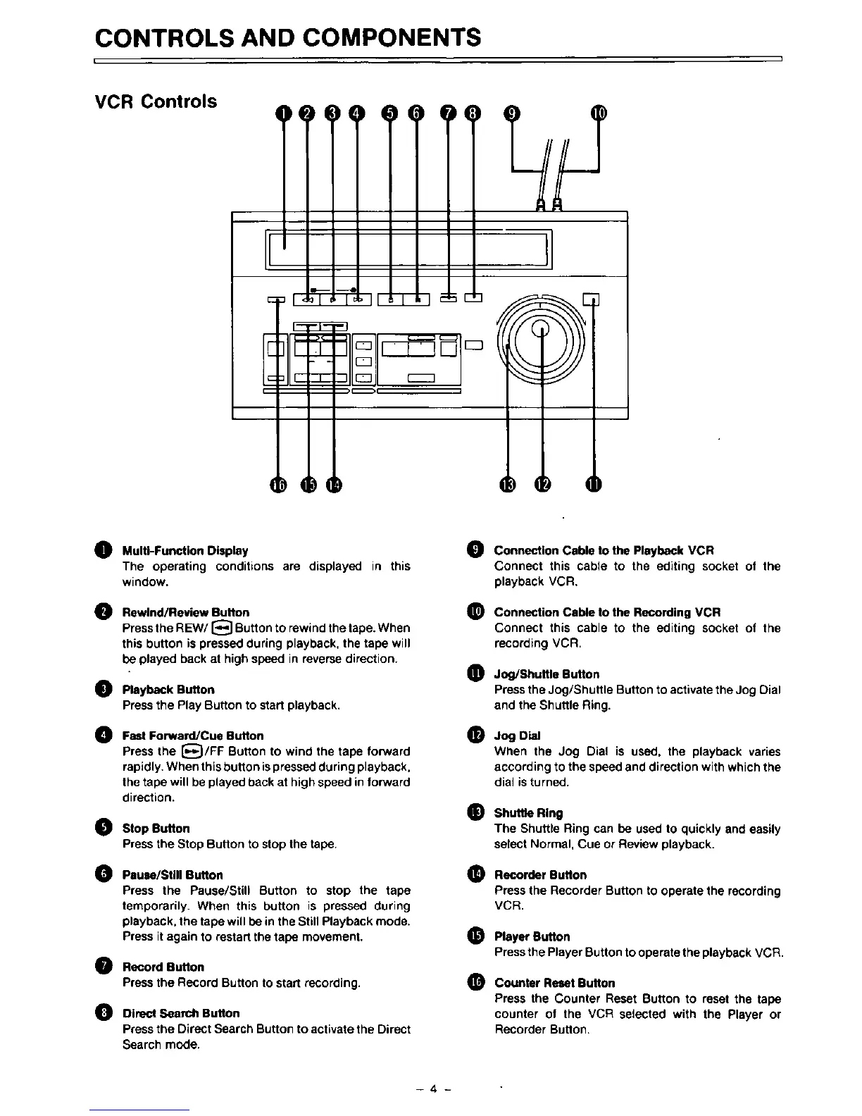 Panasonic AG-A96 - Controls and Components; VCR Controls
