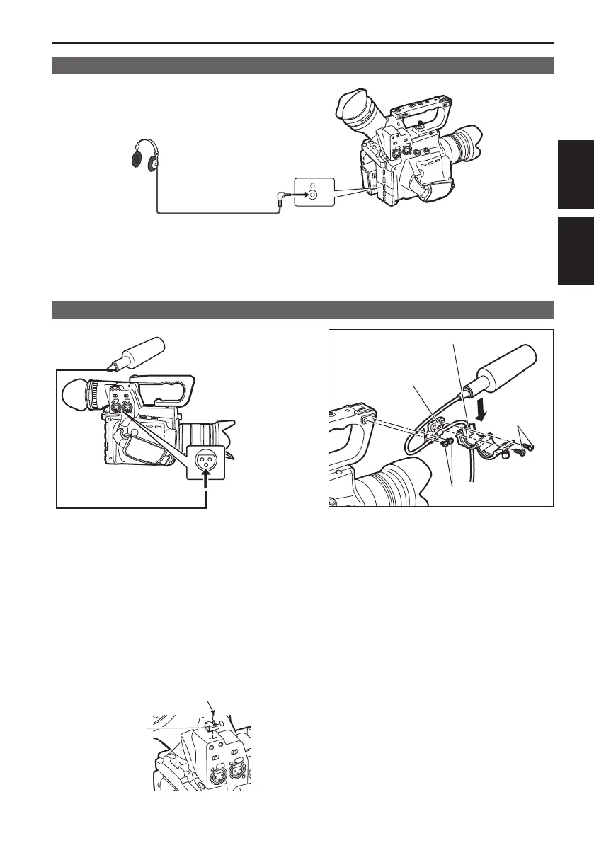 When wiring the microphone cable, use either the cable clamper of the microphone holder adaptor, or •