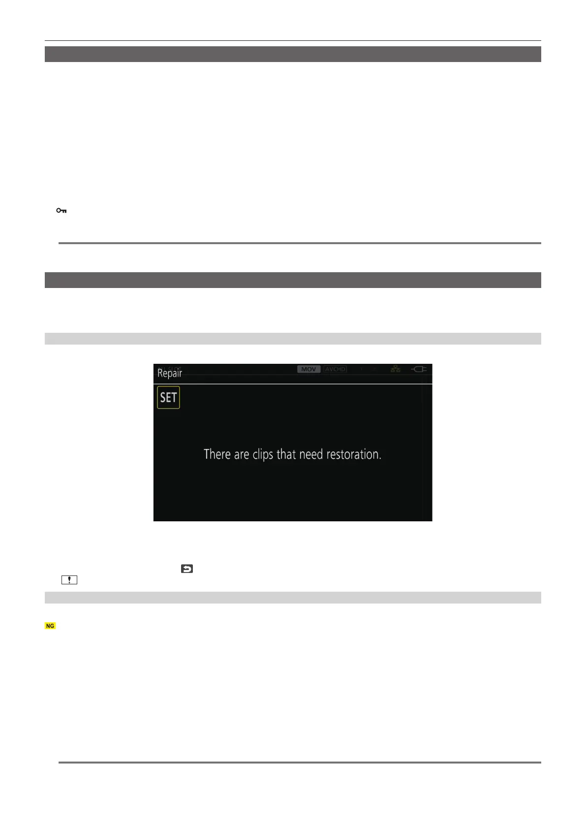 is displayed in the thumbnail screen when there is at least one defective P2 clip that may be repaired in the thumbnail screen. In such case, the clip