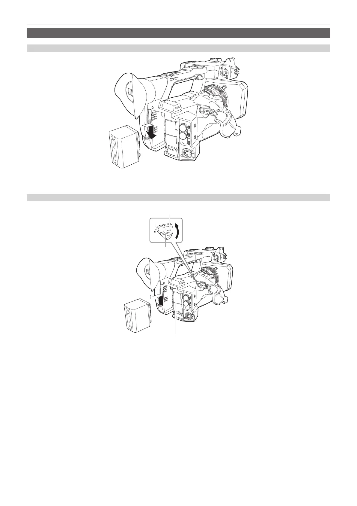 Press the battery against the battery mounting section of the camera, and mount it by sliding it downward.