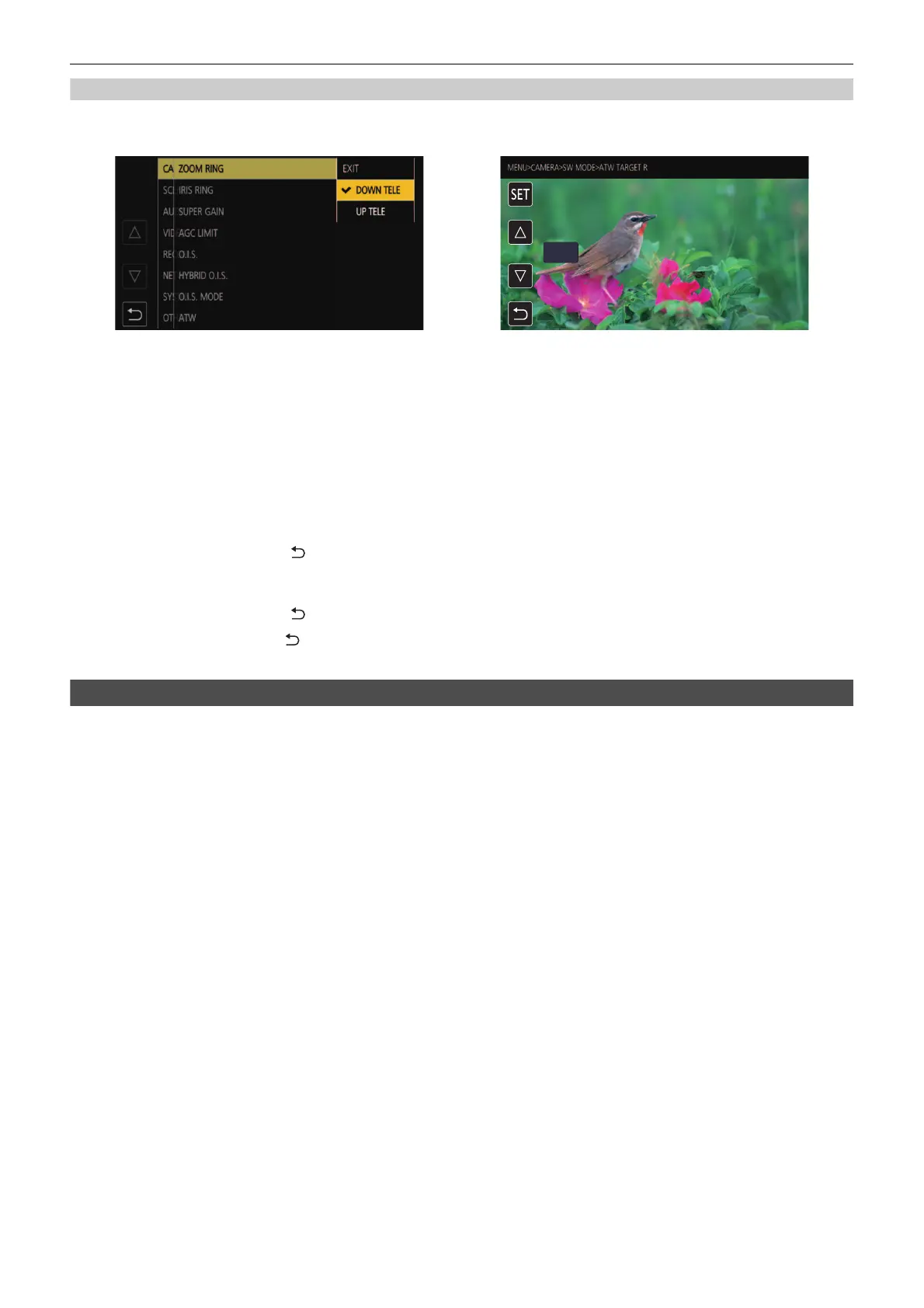 ≥ In some menus, a screen to set the numeric value is displayed in the camera image screen (Fig. 2).