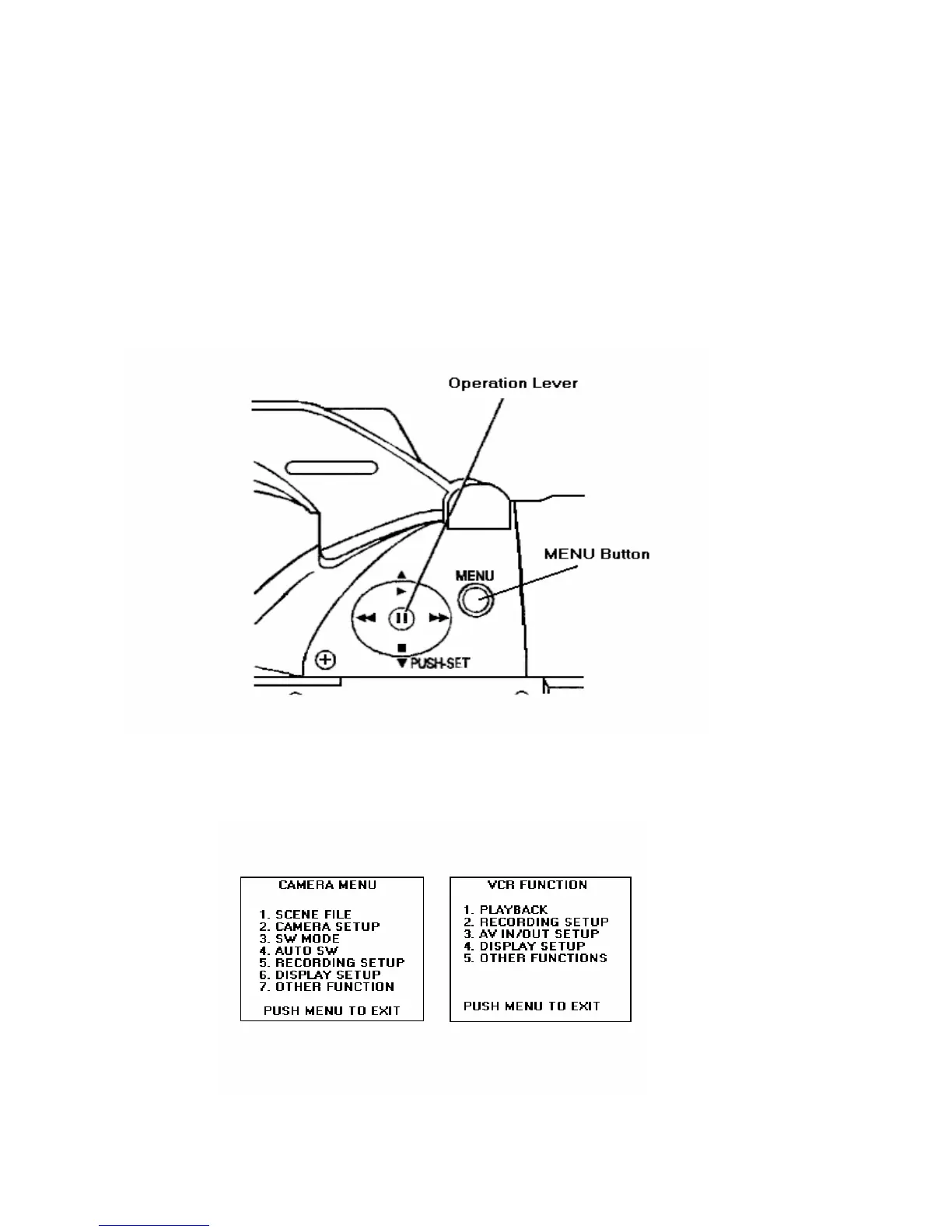 There are basically two groups of menus, one for Camera functions and the other for VCR