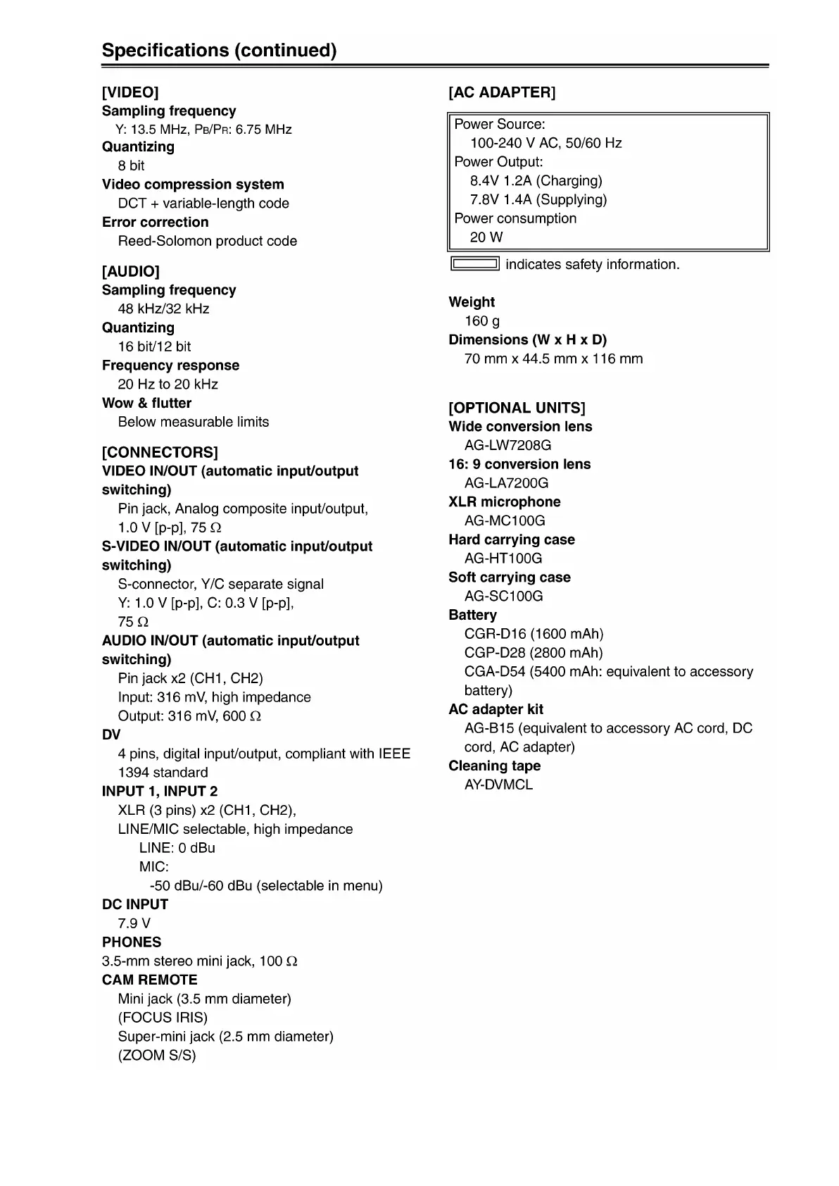 Other manuals for Panasonic AG-DVX100BP