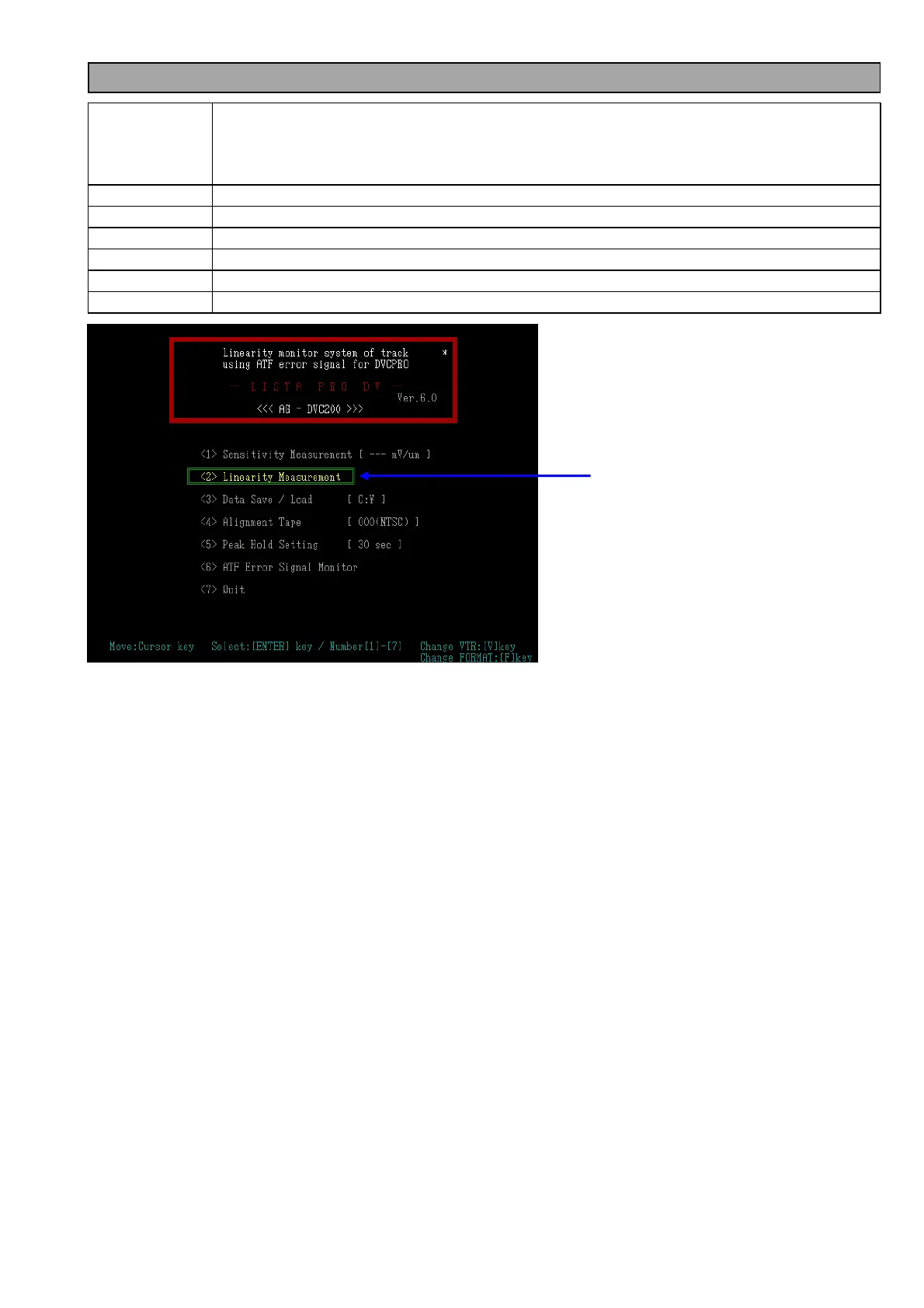 8. Select item “<2> Linearity Measurement” on the LISTA main menu, and press “ENTER”, then the Linearity