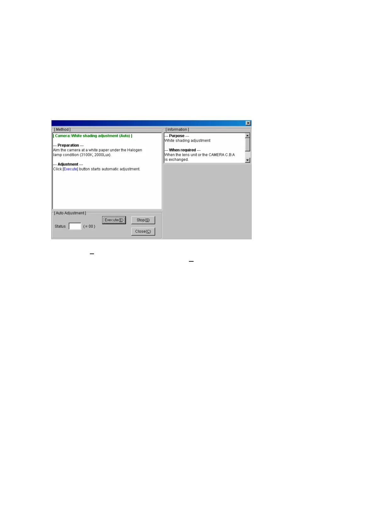 10. Double-click the adjustment item “White shading” in the main menu. The following screen will appear.