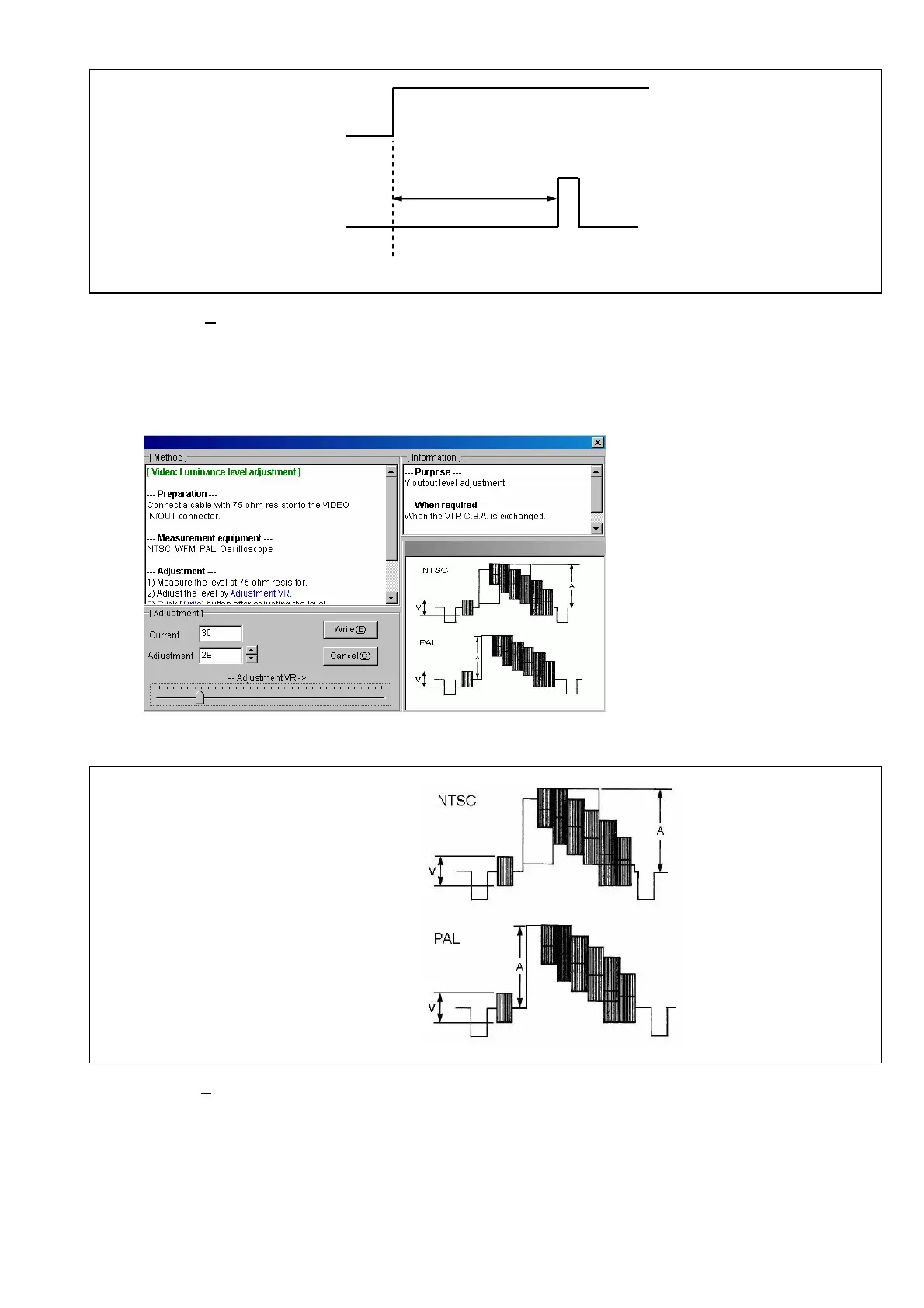 1. Connect the WFM (for NTSC) or the oscilloscope (for PAL) to the VIDEO OUT with 75ohm termination.