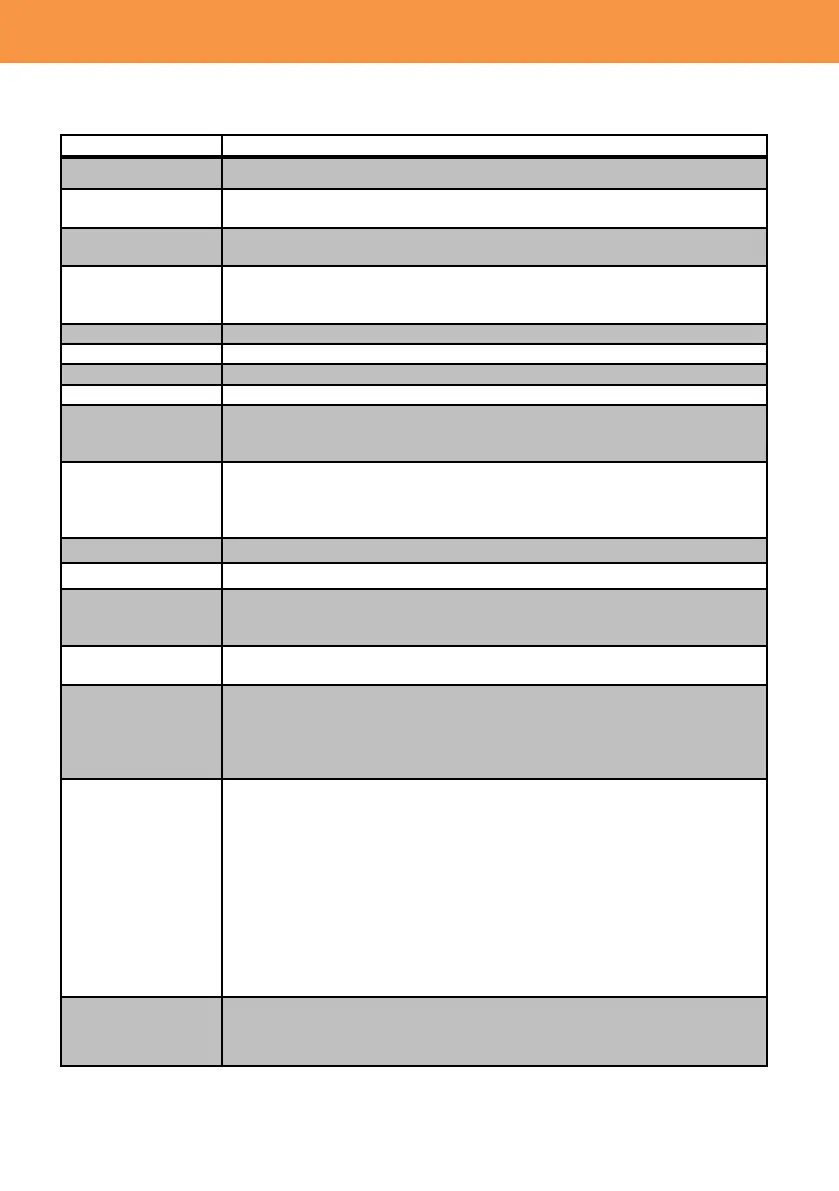 The following table shows all functions that can be assigned to the USER buttons.