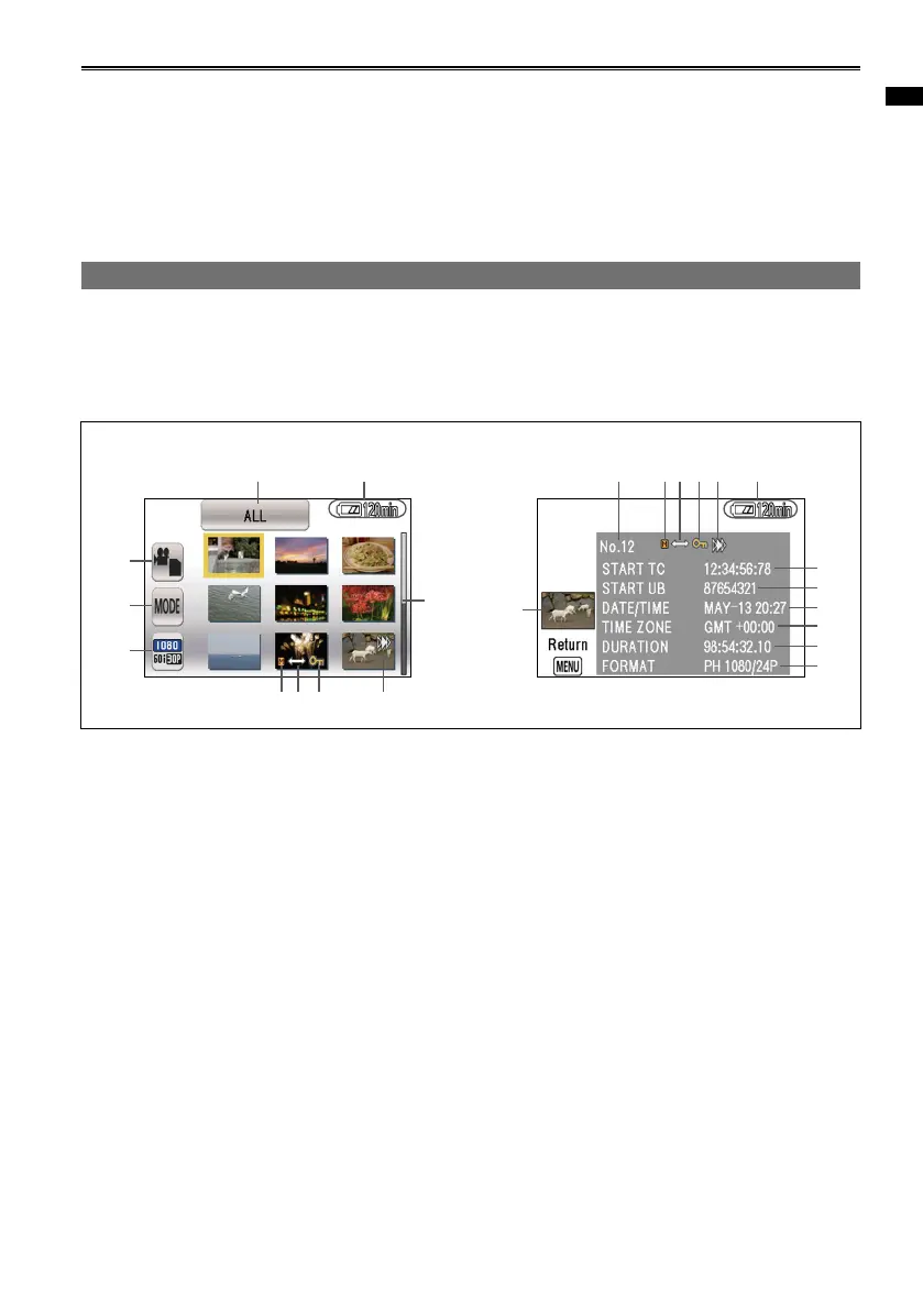 the viewfinder (The thumbnails may take longer to display with higher quantities of clips and photos.).