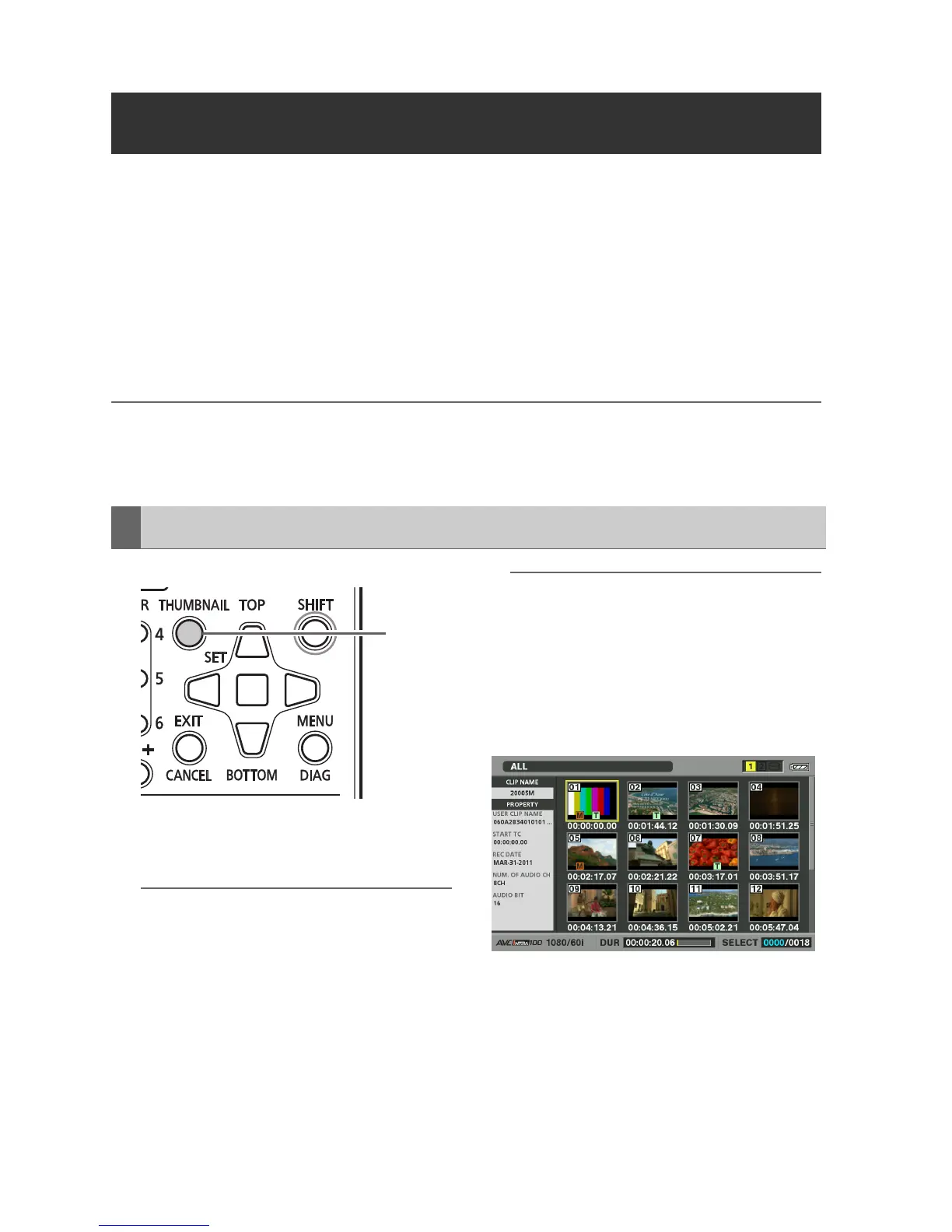 This unit provides a thumbnail screen for managing clips. A “clip” consists of a set of video, audio and