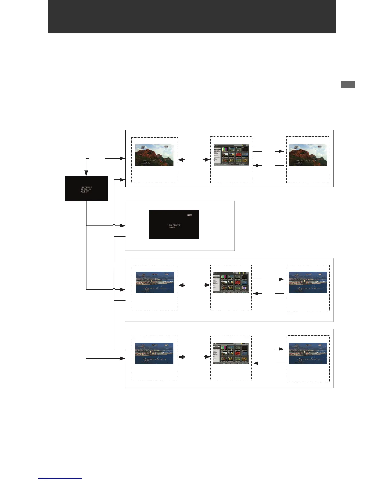 Each mode enables access to the “thumbnail screen” for displaying, managing and playing back clip thumbnails and the