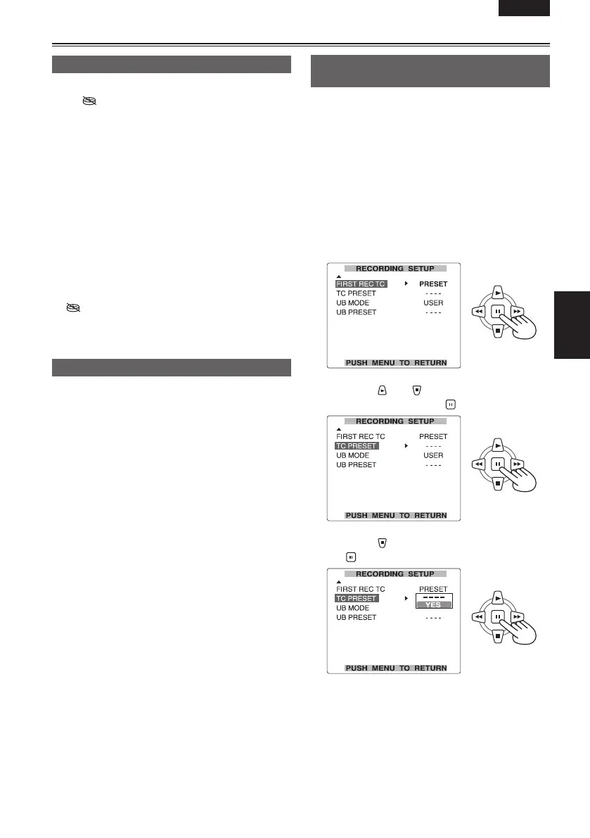 2 (Tape only) In the setup menus,