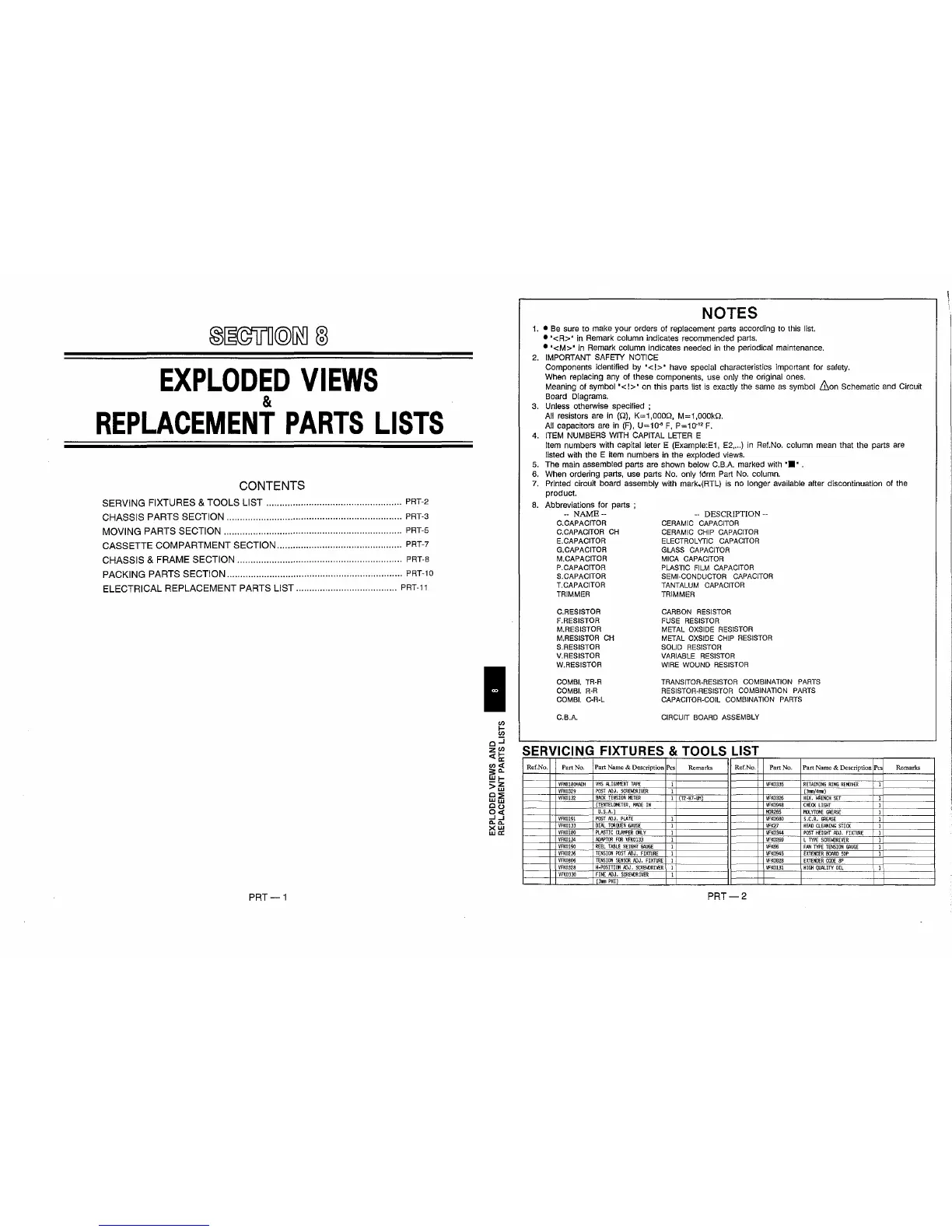 CASSETTE COMPARTMENT SECTION ............................................... PRT-7