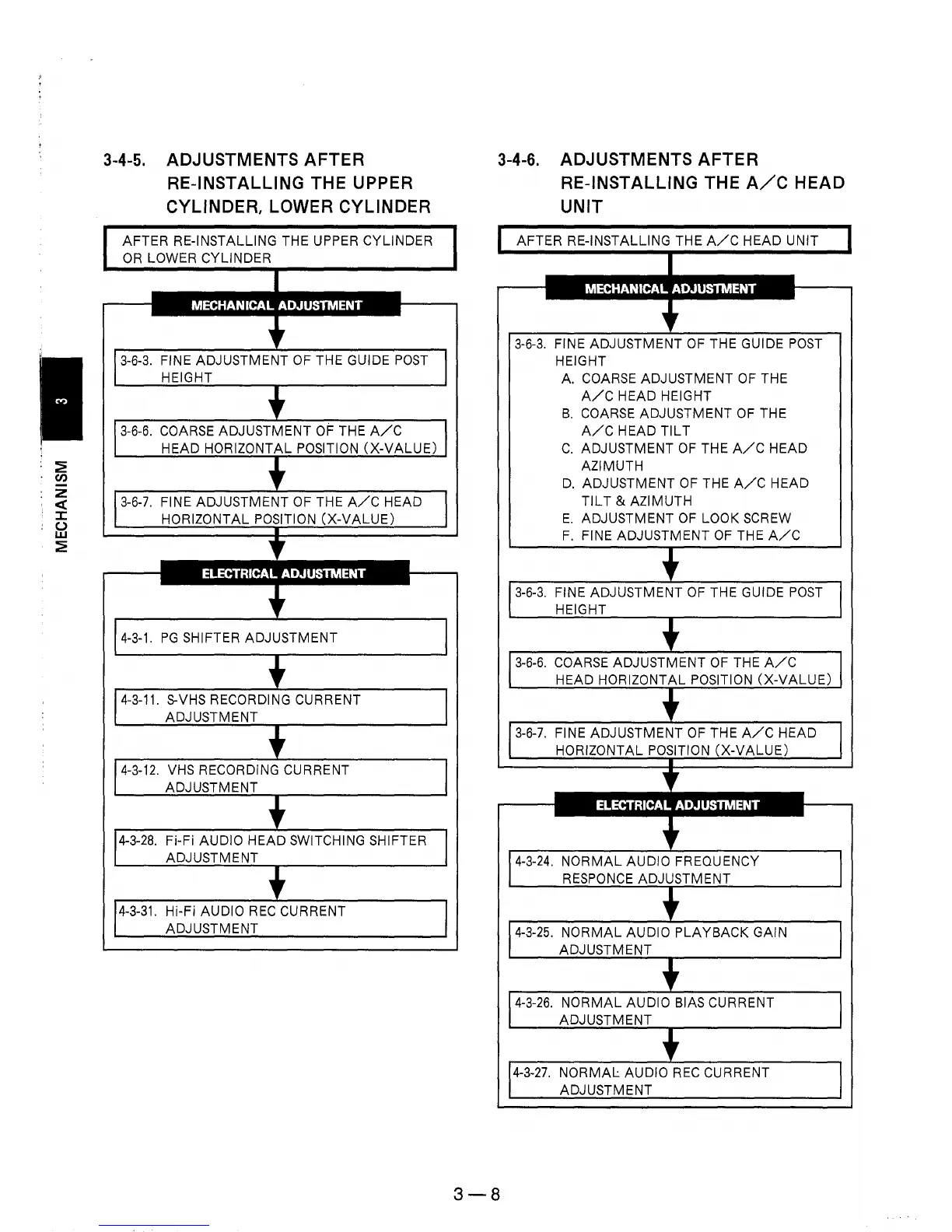 Panasonic AG-MD830E - Adjustments after Re-Installing the Upper Cylinder, Lower Cylinder; Adjustments after Re-Installing the A;C Head Unit