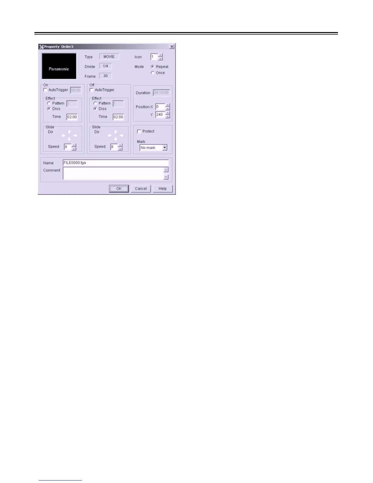 Speed: Enter the slide speed (number of pixels to be
