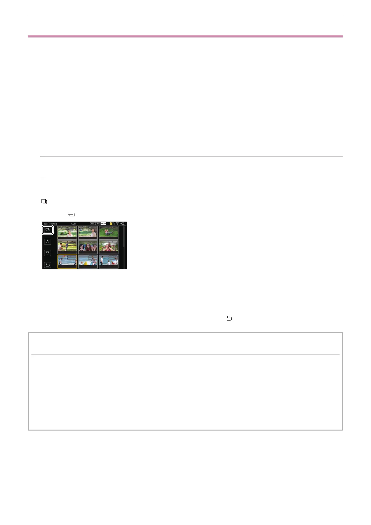 The clips on the memory card of the copy source is displayed in the thumbnail screen.