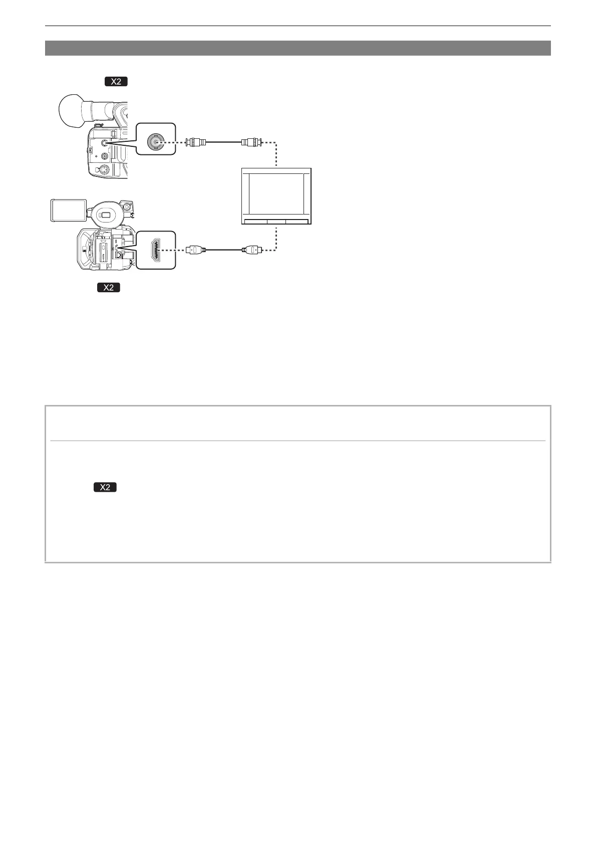 • When using , use a BNC cable (<SDI OUT> terminal) to connect a TV/monitor.