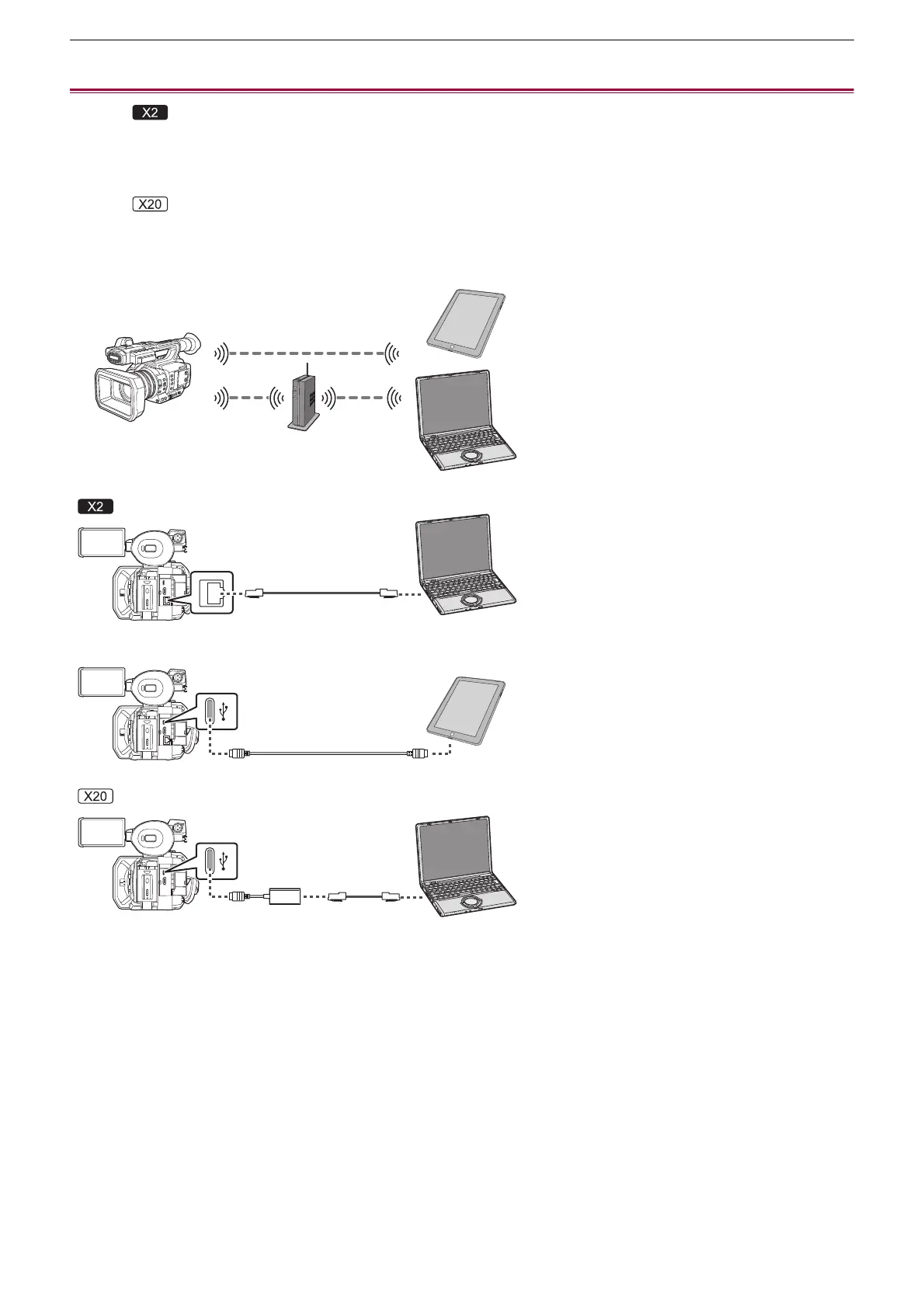 The camera can be connected to a network via wired LAN, wireless LAN, and USB tethering.