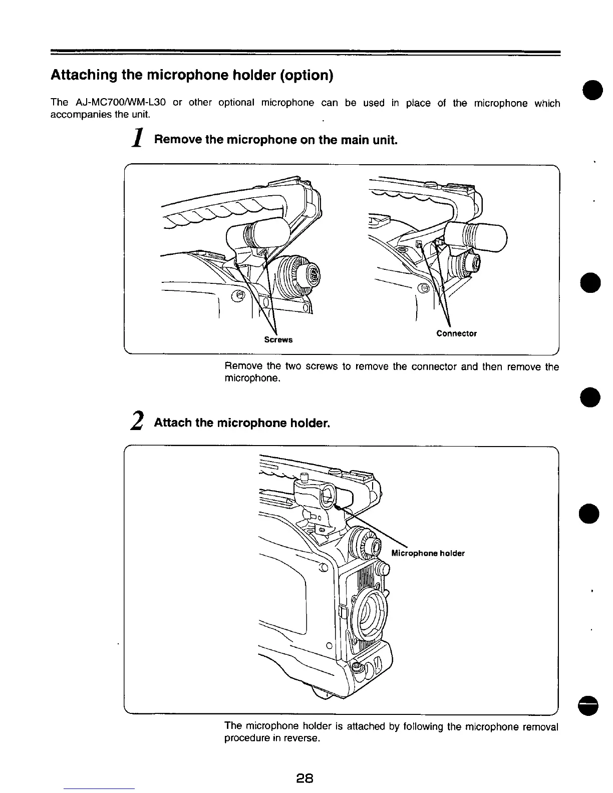 Panasonic AJ-D200 - Attaching the Microphone Holder