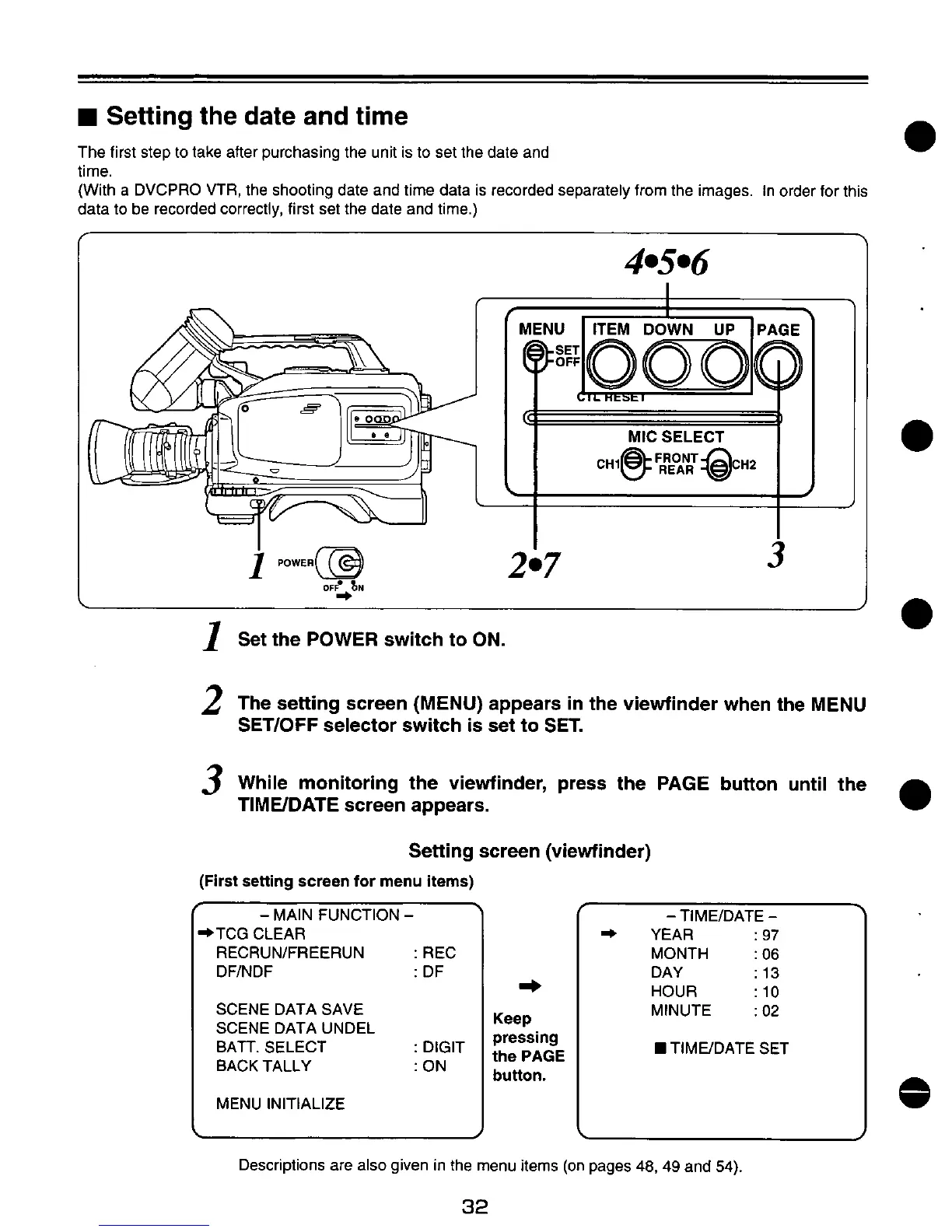 Panasonic AJ-D200 - Setting the Date and Time; Setting Screen