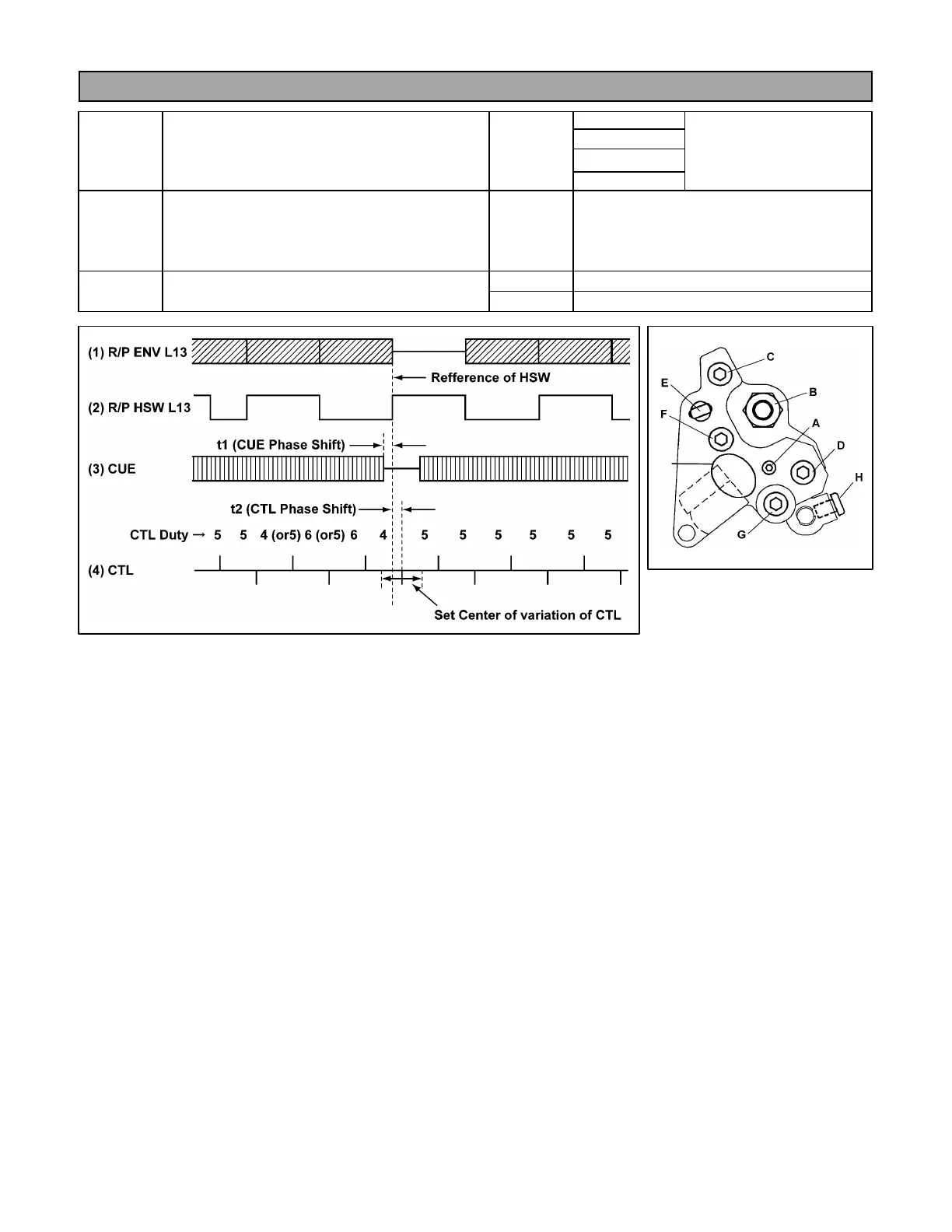 3. Adjust screw (F) so that the CTL and Lack part of CUE (t2) is match in the phase. (refer to A/C Head
