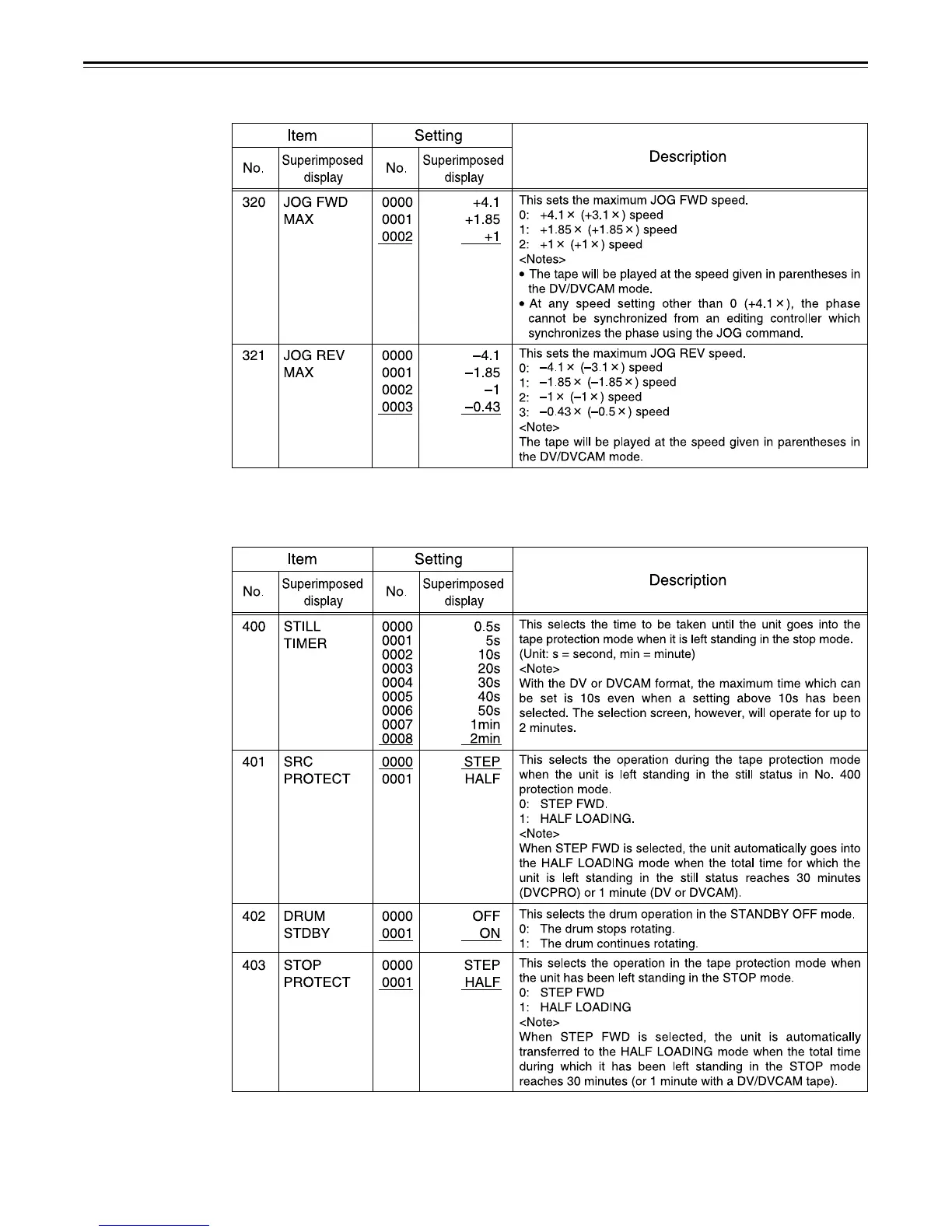 In order to protect the tape and VTR helical heads, it is recommended that the Still Timer be set for