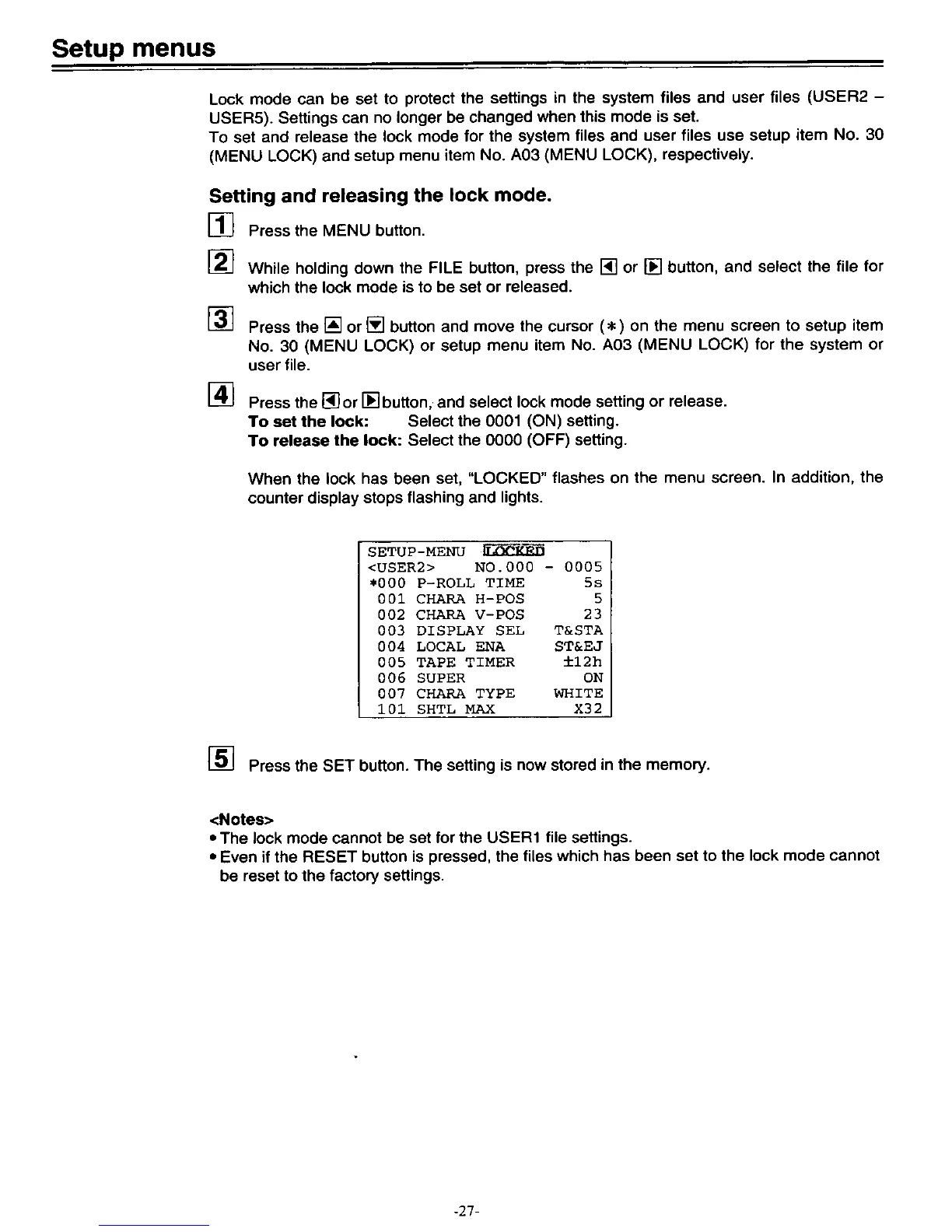Panasonic AJ-D450 - System Setup Menus (Additional); Setting and Releasing Lock Mode