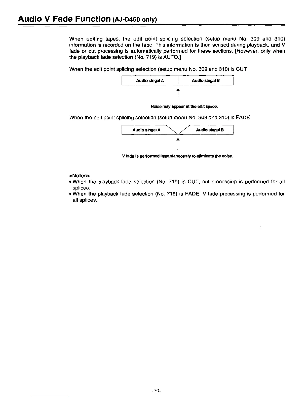 Panasonic AJ-D450 - Audio V Fade Function (AJ-D450); Edit Point Splicing and Fade Processing