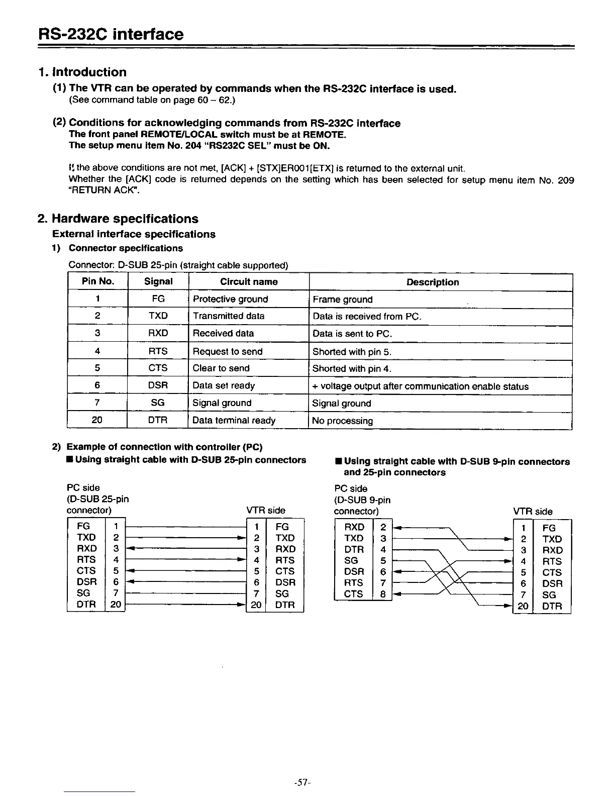 Panasonic AJ-D450 - RS-232 C Interface; Interface Introduction and Conditions; Hardware Specifications