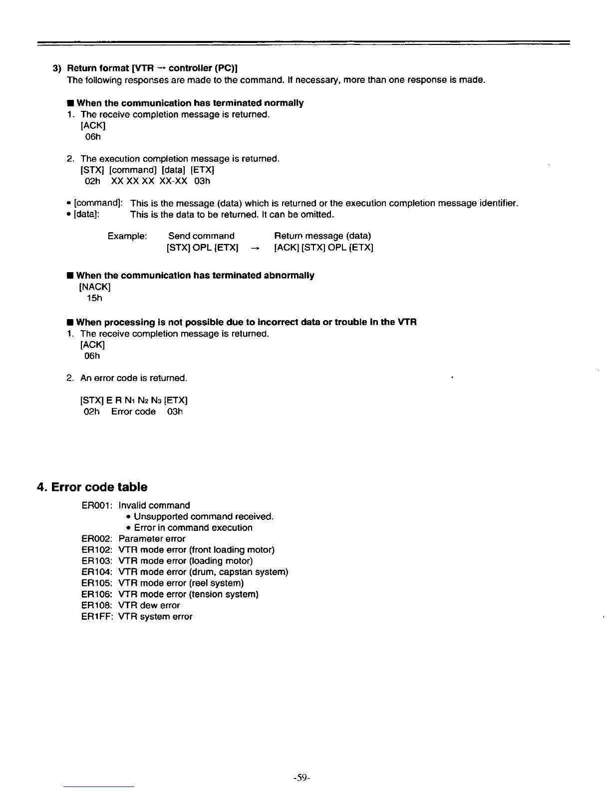 Panasonic AJ-D450 - RS-232 C Interface (Additional); Return Format and Error Codes