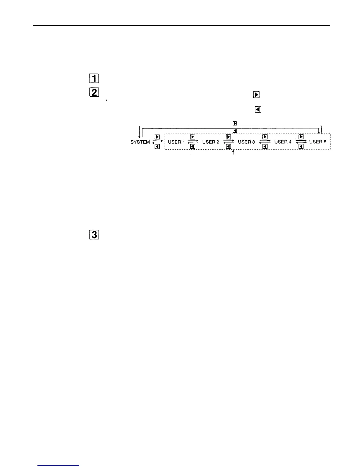 This unit can store up to 5 user files (user 1 to user 5) containing different menu settings,