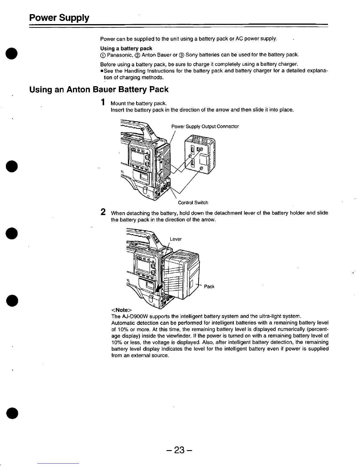 Panasonic AJ-D900 - Power Supply and Setup Procedures; Power Supply Options