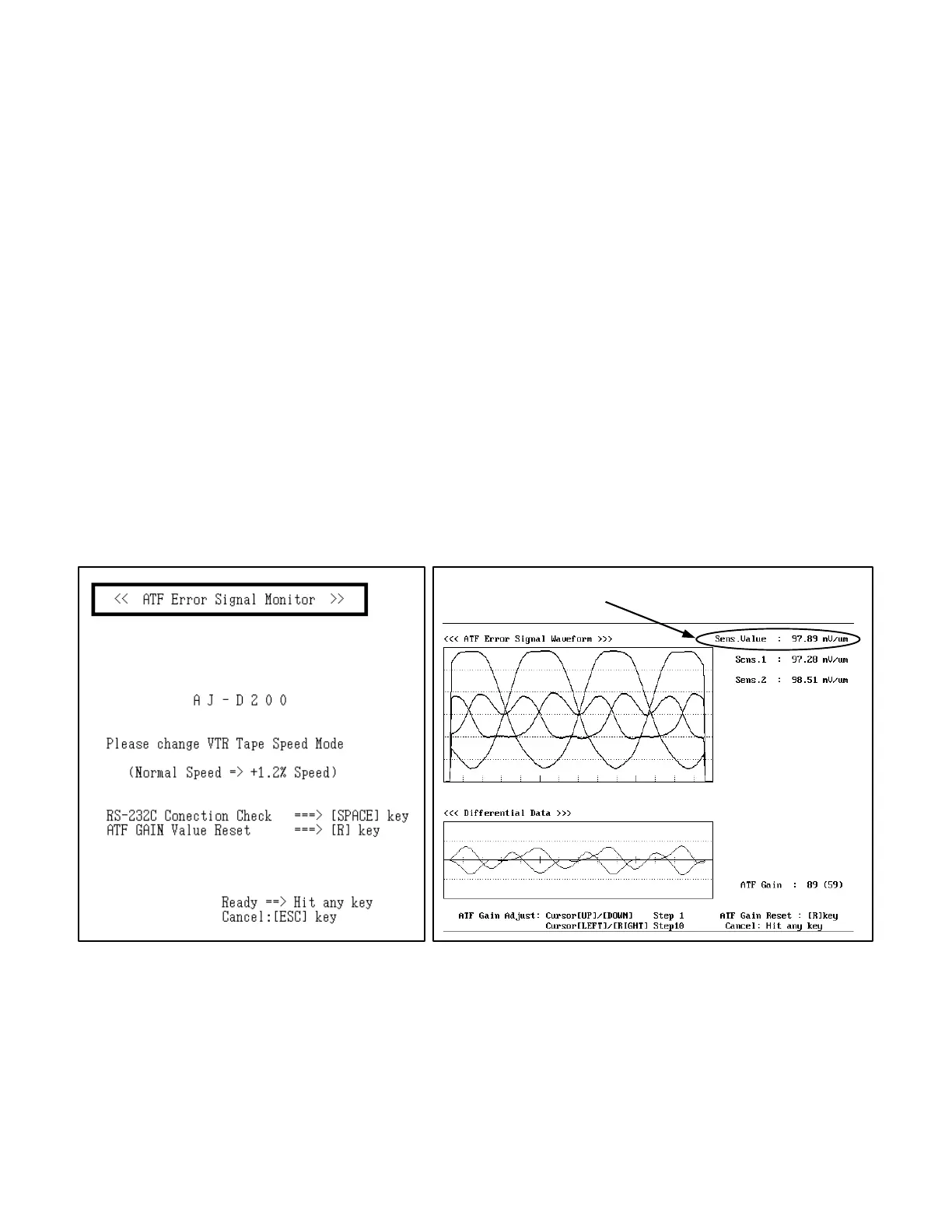 adjustment value of ATF GAIN. Next, press the Enter key and displayed real time sensitivity data.