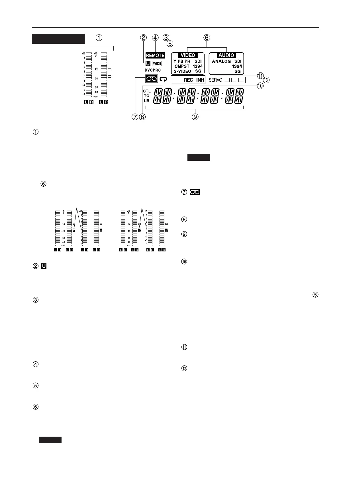 The tape counter, time code, etc. are displayed here.