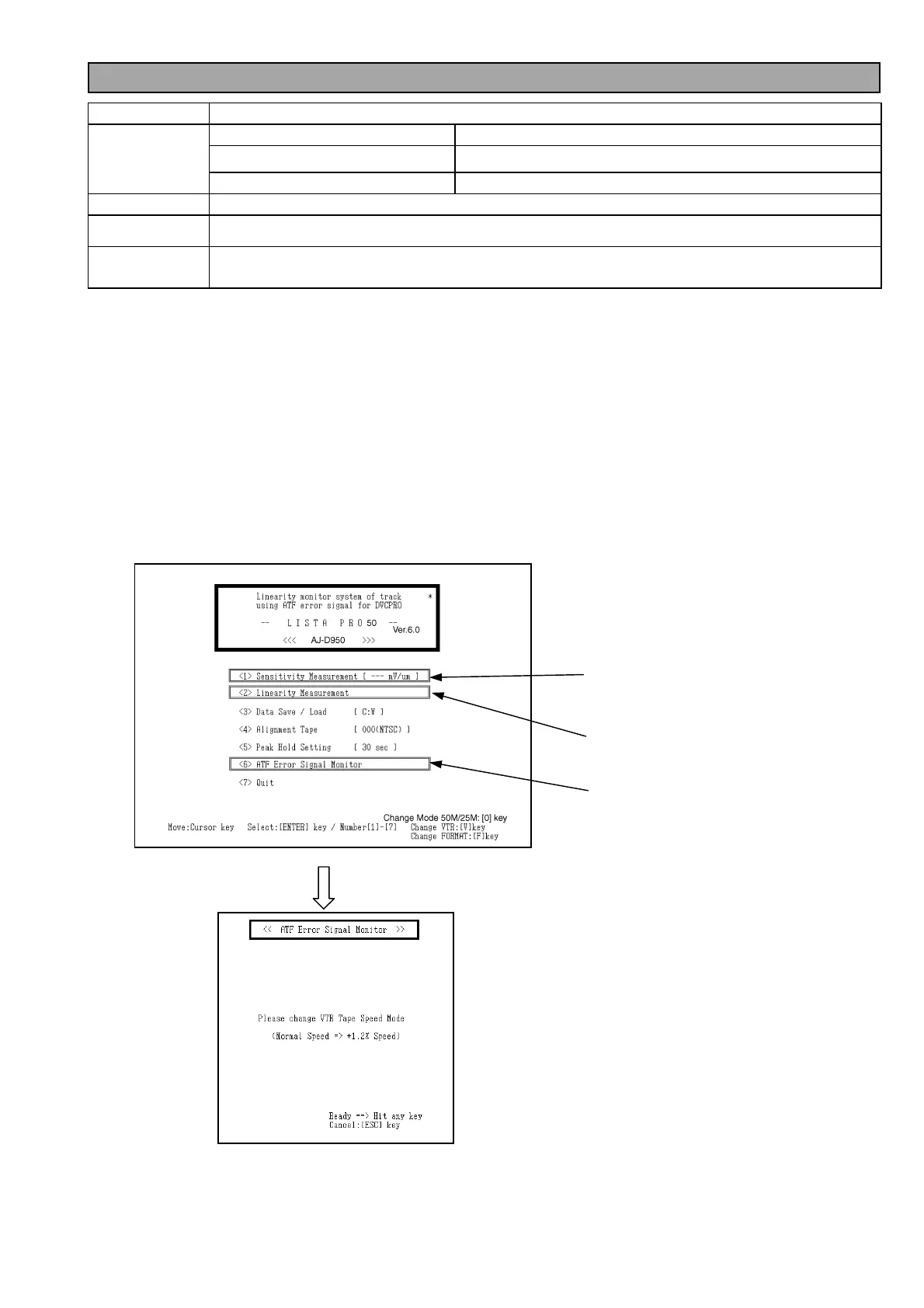 5. Select Lista Main Menu “(1) Sensitivity Measurement” so that the screen of <ATF Error Signal monitor> appears