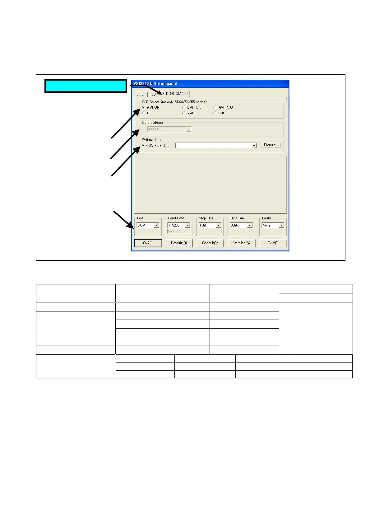 Port COM1 Baud Rate 115200