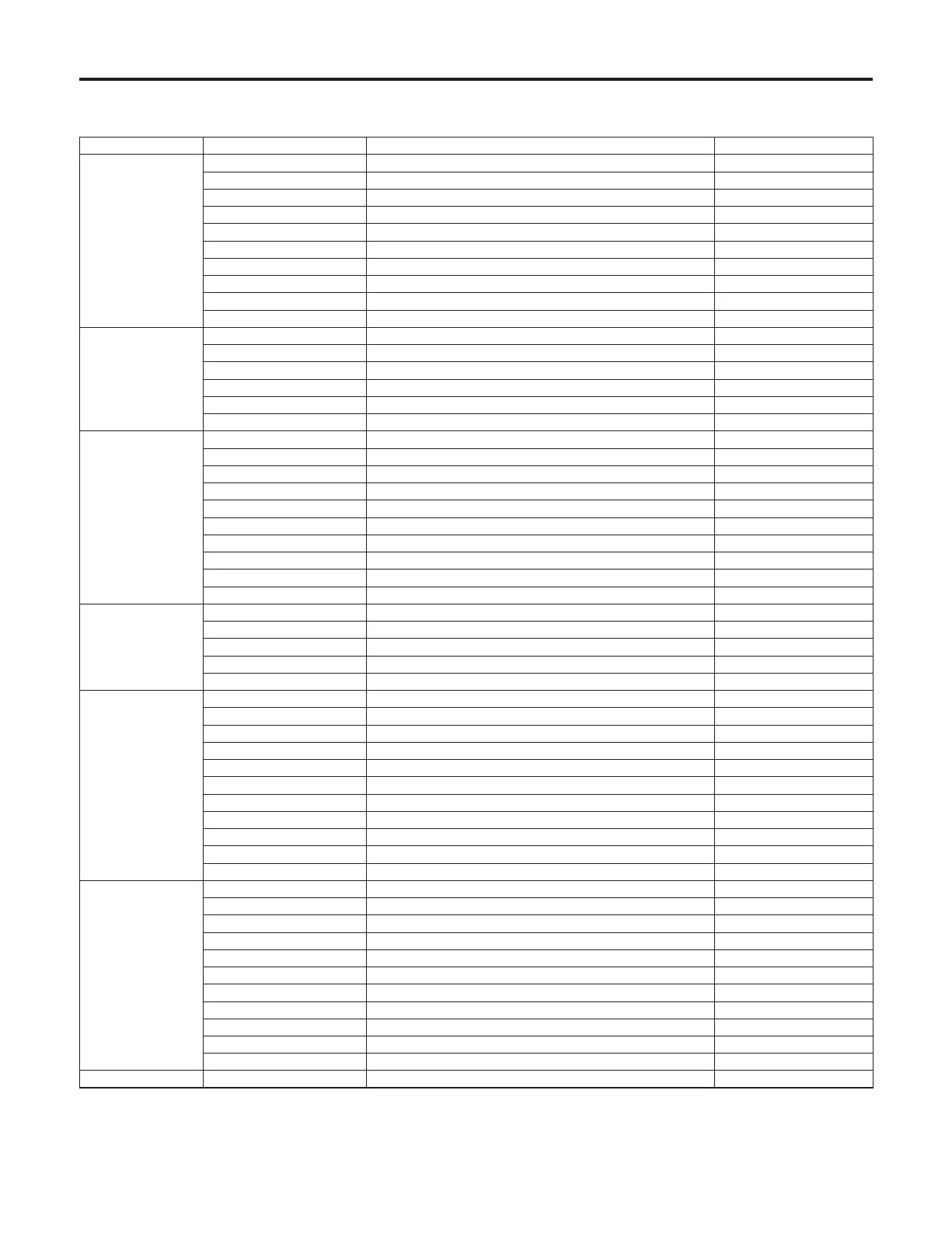 Table of adjustment setting ranges
