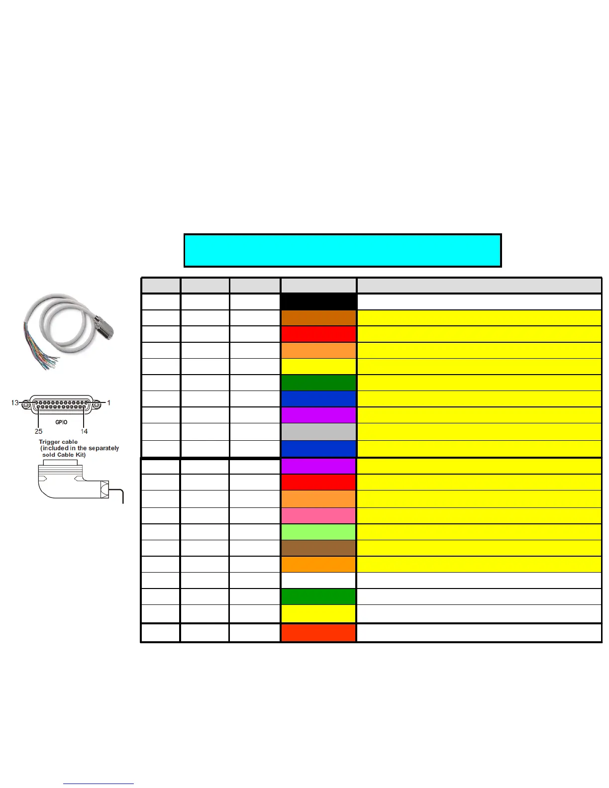 Pin # Signal Remark Cable Color Trigger Name (Example)