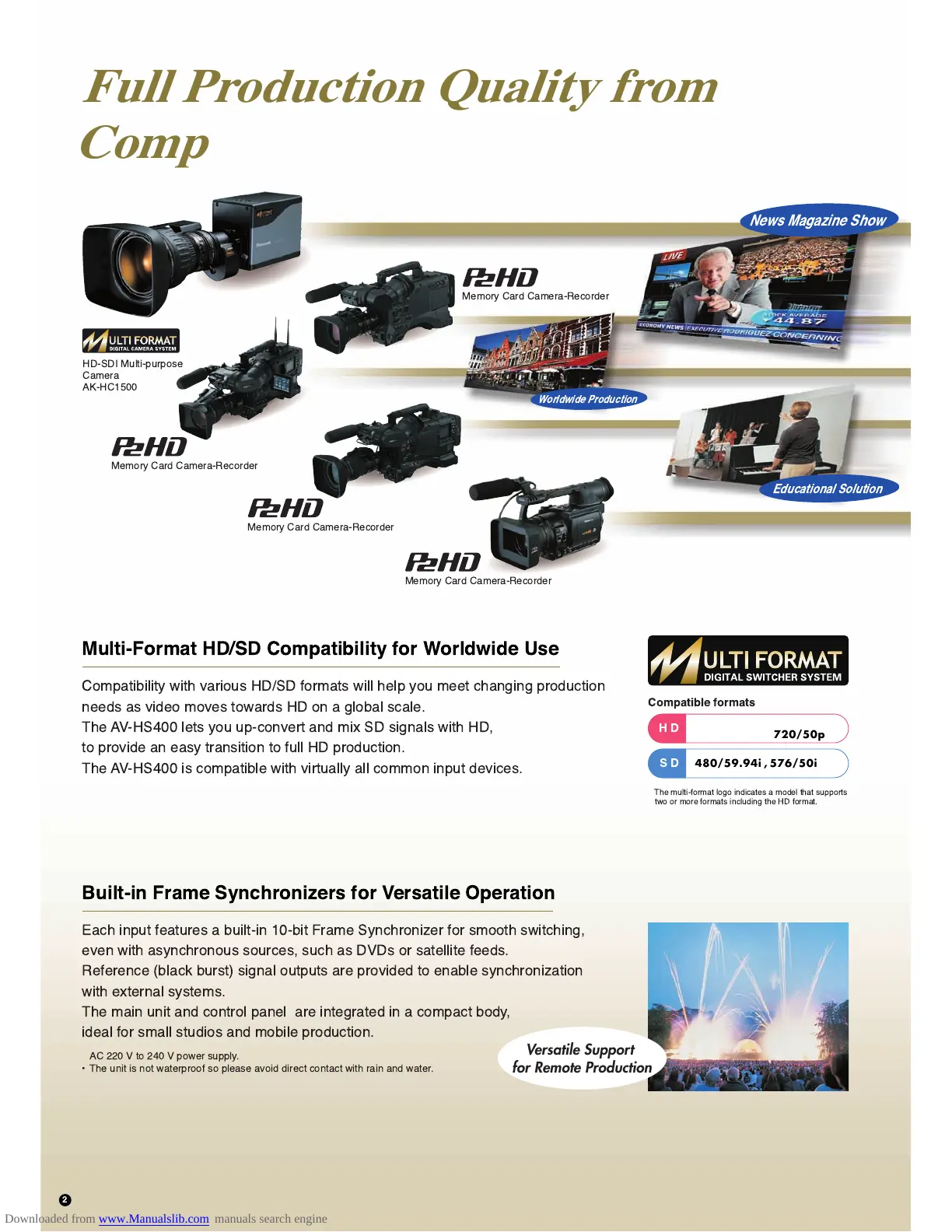 The AV-HS400 lets you up-convert and mix SD signals with HD,