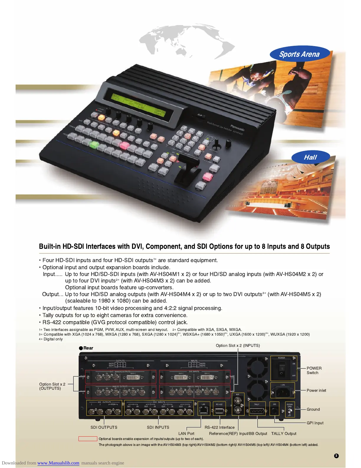 Input..... Up to four HD/SD-SDI inputs (with AV-HS04M1 x 2) or four HD/SD analog inputs (with AV-HS04M2 x 2) or