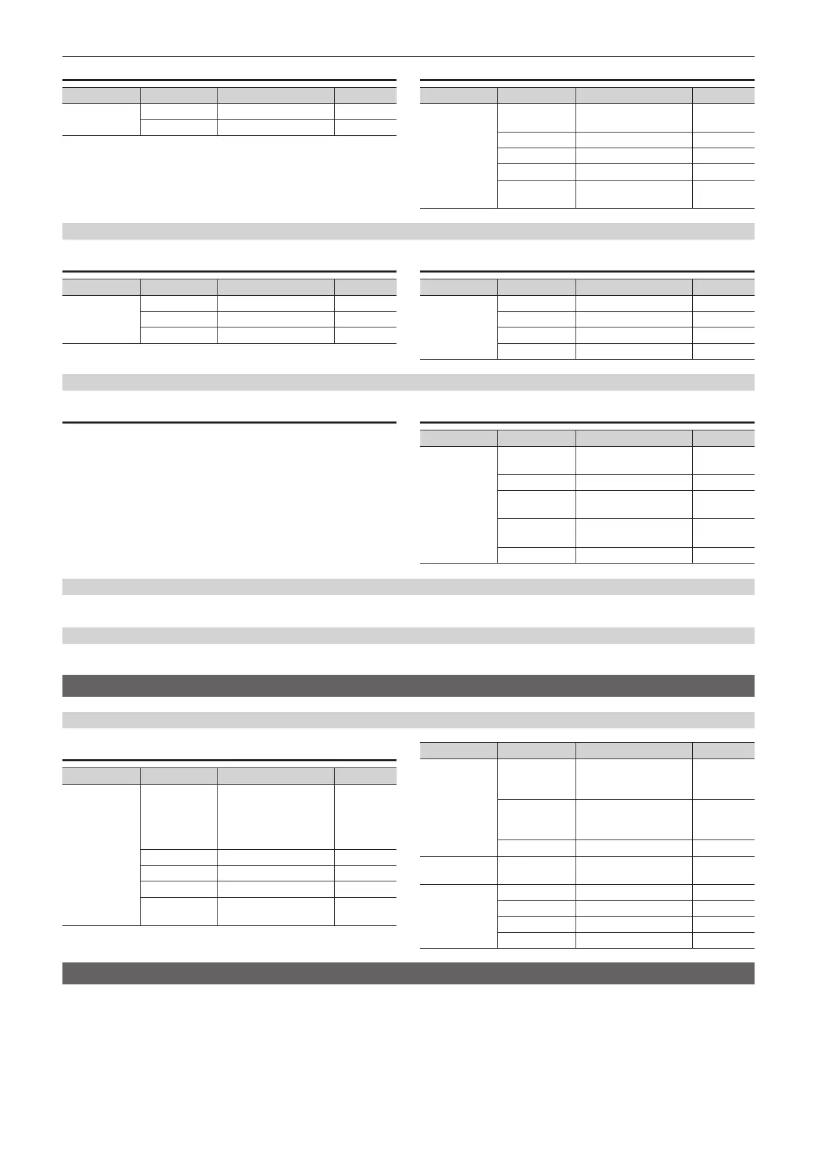 Chapter 11 Appendix — Setting menu table