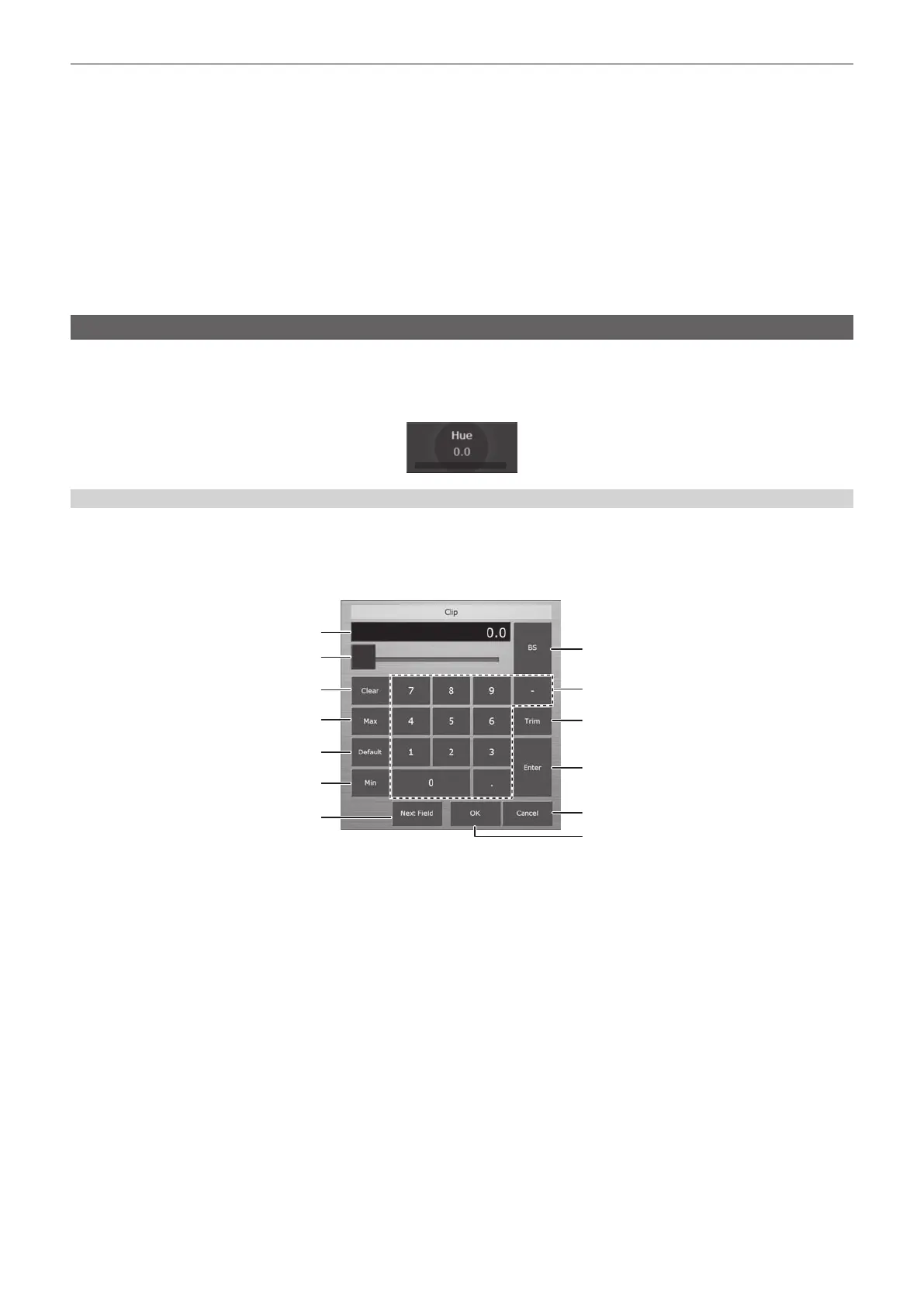 Immediately after displaying the on-screen numerical keypad, the current numeric values are displayed.