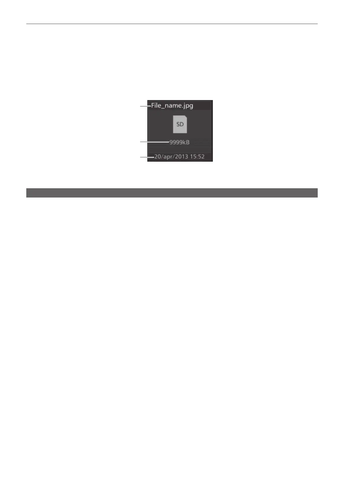 Select the <MEM> button on the top menu → [CLIP]/[STILL] → [Register] tab, and then the following le icon is displayed on the le selection screen.