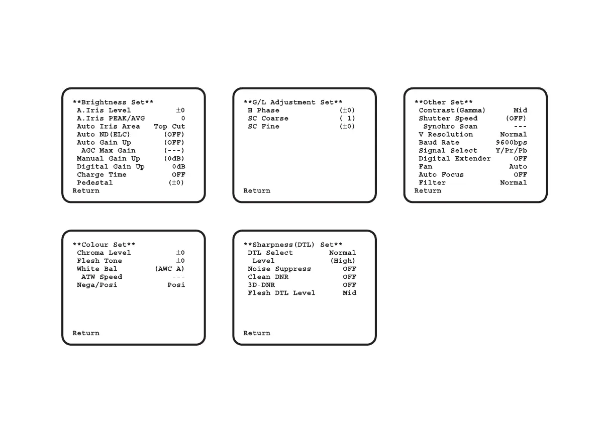 • Die in Klammern aufgeführten Einstellungen können mit dem RCU-Schalter oder VR in dem Fernbedienungseinheits-