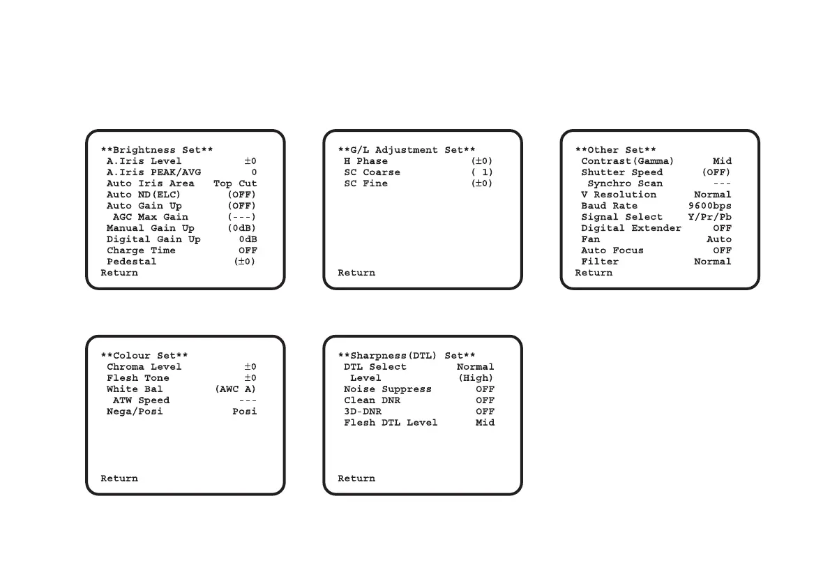 Les réglages indiqués entre parenthèses peuvent être faits avec le commutateur RCU ou VR à partir du mode RCU.