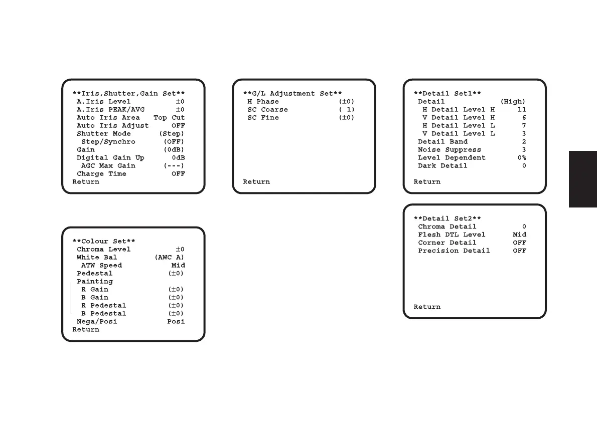• Les réglages indiqués entre parenthèses peuvent être faits avec le commutateur RCU ou VR à partir du mode RCU.