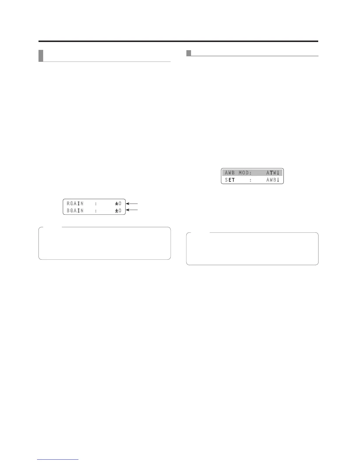 [R/BGAIN] menu is displayed on the LCD panel.
