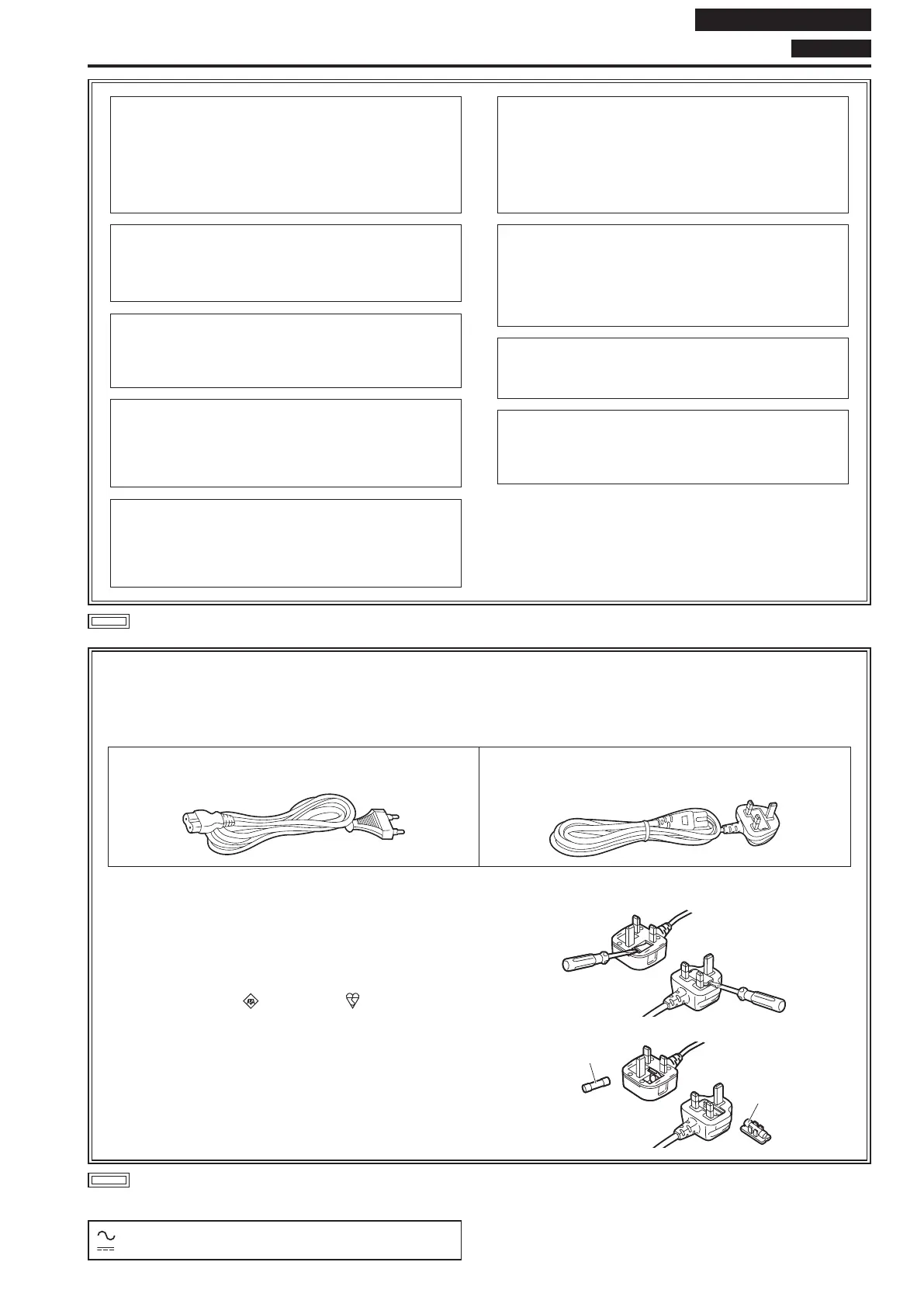 This product is equipped with 2 types of AC mains cable. One is for continental Europe, etc. and the other one is only for U.K.